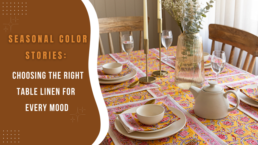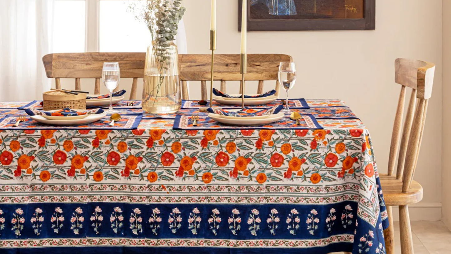 Your dining table is more than a place to eat—it’s where laughter echoes, stories unfold, and memories are made. At Poppy Dream, we believe that every detail matters, especially the one that brings it all together: your table linens. From light florals in spring to deep hues in winter, the right tablecloth and table linens can set the tone for every season. Crafted using Sanganeri hand block printing, our linens capture the timeless charm of Indian craftsmanship while celebrating modern, conscious living. Here’s how to bring seasonal moods to your table, one handcrafted piece at a time. Spring – Fresh...