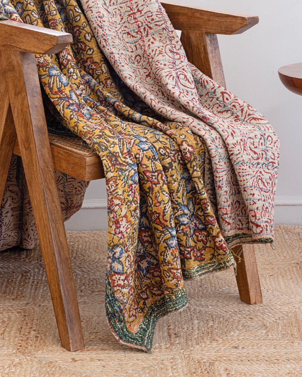 We’ve reimagined these vintage textiles into throws and refreshed them with block prints. No two are alike. What you take home is a singular story that continues in your space.